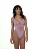 Manso, un body muy femenino con forma de escote halter en microfibra con detalles de encaje geométrico y espalda escotada cruzada.