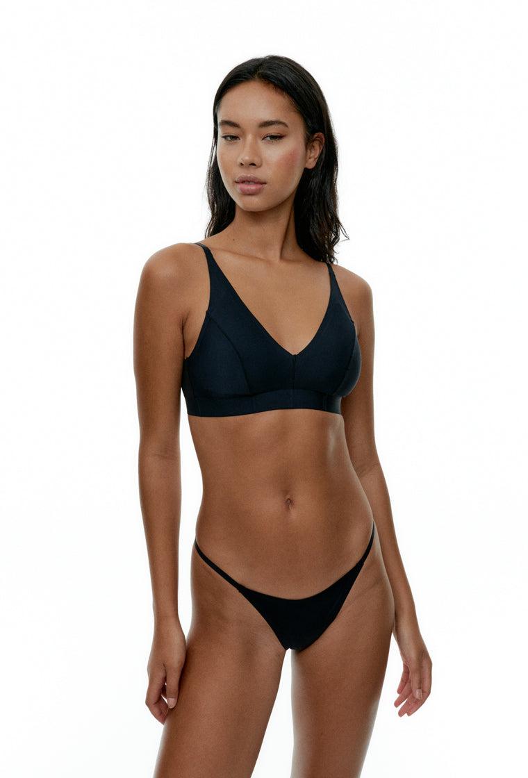 Jane es un conjunto confeccionado en microfibra ultra suave para una comodidad incomparable. El tanga diseñado con tiras laterales finas para una sujeción discreta y ajuste cómodo bajo cualquier prenda. El sujetador bralette triangular, también de microfibra suave, se adapta perfectamente, con detalles en mesh para mayor frescura y sofisticación. Ajustable con tiras regulables y con foam extraíble para soporte sutil, es ideal para el día a día y debajo de prendas deportivas. _